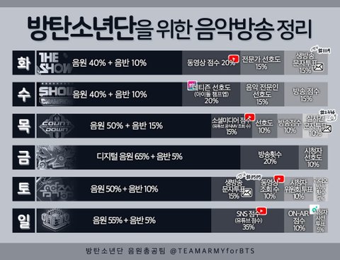 ❕ 음악방송 별 순위 집계 비율