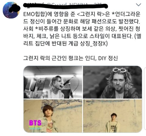 난 뭔가 탄이들이 팬들 입맛에만 맞춘 예쁜 인형같은 아이돌이 아니여서 좋아하게 된건데 요새 들어 인형같길 원하는 목소리가 조금씩 (그게 팬인지 어그로인지는 모르겠지만) 들리는 거 같오ㅠㅠㅠ 방탄소년단이 아티스트로써 성장해나가길 바라는 팬이라면 그들의 컨셉을 이해하고 그 컨셉에 맞춘 스타일링을 이해하는 자세도 필요하지 않을까 싶음! 예쁘고 귀엽고 잘생기기만 해서 좋아하는 거 아니자나!