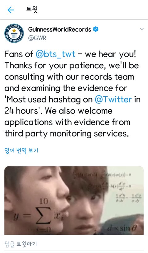 ㄱㅣ네쓰 틧터 계정에서 방탄 언급