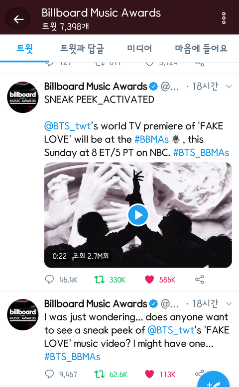 먼저꺼에서 "혹시 그냥 궁금해서 그런데... fake love 뮤비 맛보기로 슬쩍 보고싶은 사람 있어..? 내가 하나 갖고 있긴한데 말이야.."이러더니 진쩌 레알 감질맛나게 공개ㅋㅋㅋㅋㅋ