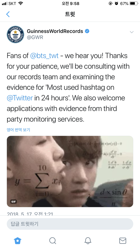 Gㅣ네스 우리 기록 검토한다는 공계에