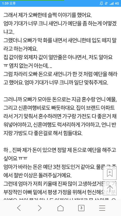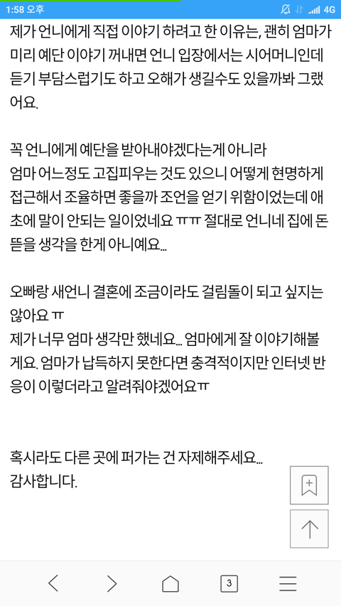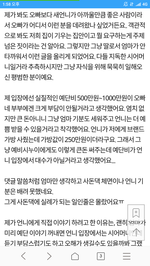 새언니가 예단해줬으면 좋겠어요