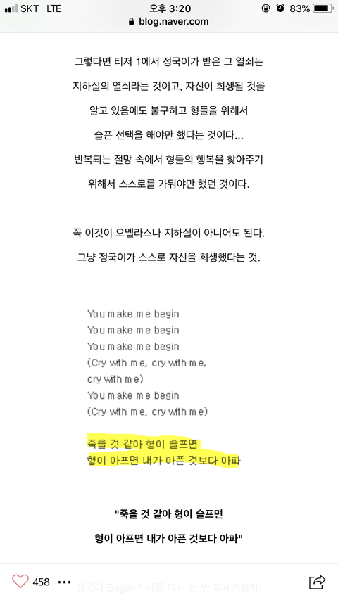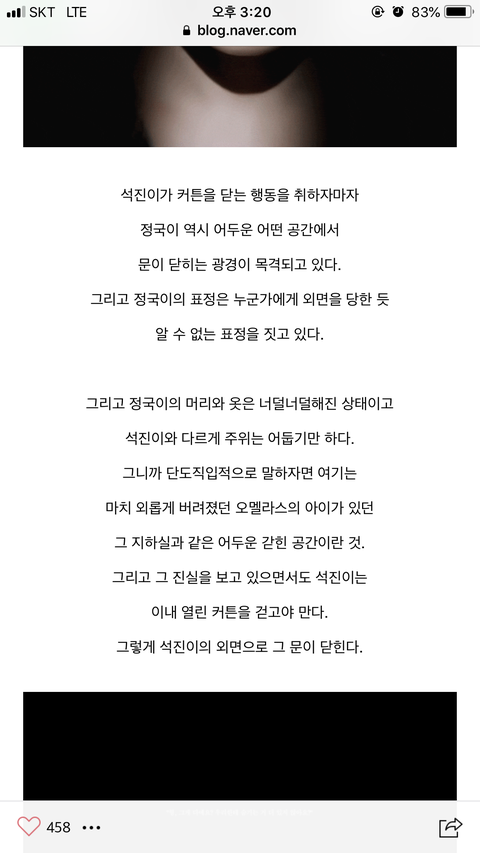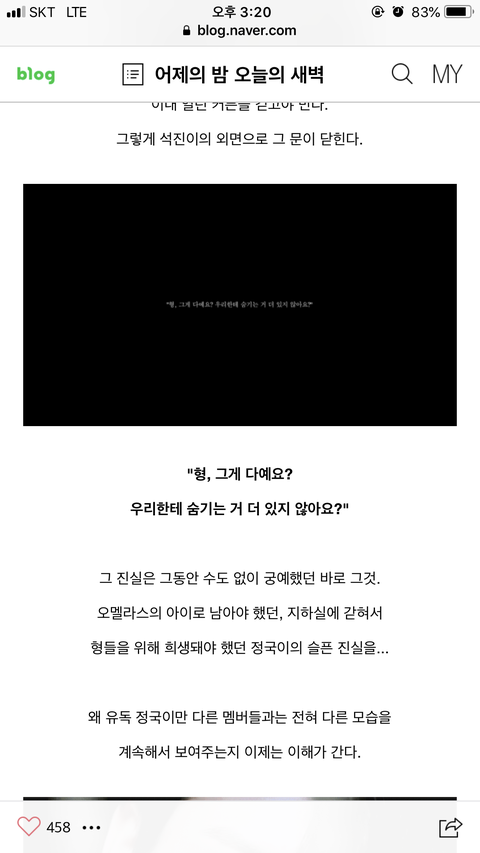 궁예글은 항상 잼있어..♡♡ 근데 오멜라승는 아이가 강제로 괴로움에 처해있고 사람들이 죄책감을 느껴서 각자의 양심대로 살아가기 시작한다는 이야기라 정국이가 스스로 희생했을 거 같진 않은데.. 왜냐면 아이가 희생했다로 변경되면 오.멜라스의 중요한 주제를 배반하는 거거든..