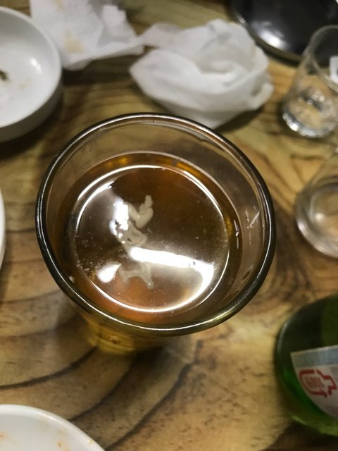 2018.5.4. 삼겹살집에서 고기먹다가 맥주에서 혐오스럽게 이물질이 나왔어요 (사진첨부)