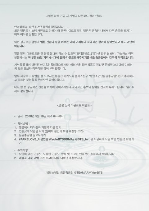 음원 관련 기타 문의는 '방탄소년단 음원총공팀' 카카오톡 플러스 친구로 부탁드립니다. 감사합니다.
