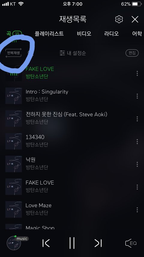 하트옆에 전체 재생은 눌렀는데 이건 누르는거야 안누르는거야?