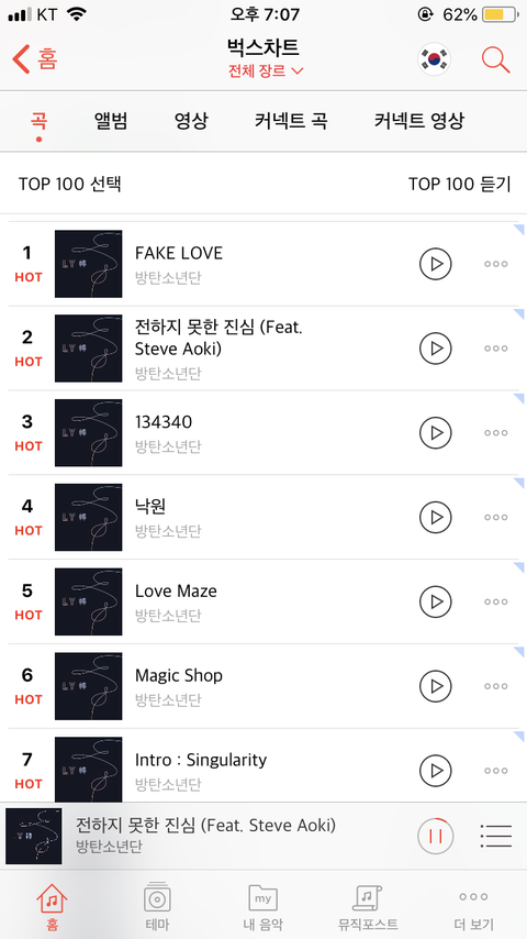 벅1스 7시 차트!!