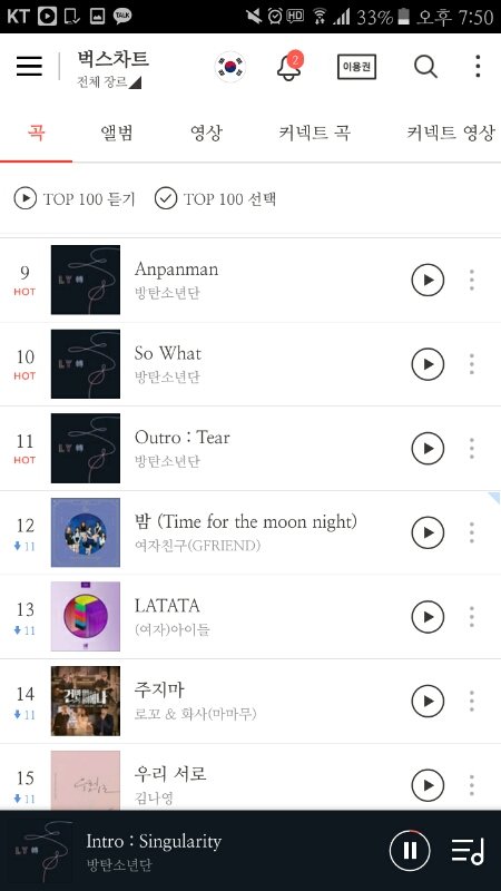 이래..! 지니는 아까 캡쳐했긴한데 아직 7시 차트니까..!