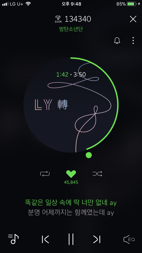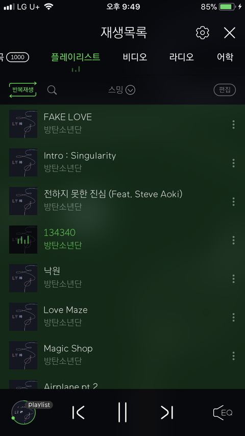 지금 이렇게 순서대로 반복설정 해놓고 6시부터 계속 듣고 있는데 지금 스밍 되고있는 거 맞아?? 마이 뮤직에도 페이크러브 횟수는 안뜨길래 불안해서ㅠㅜㅜ