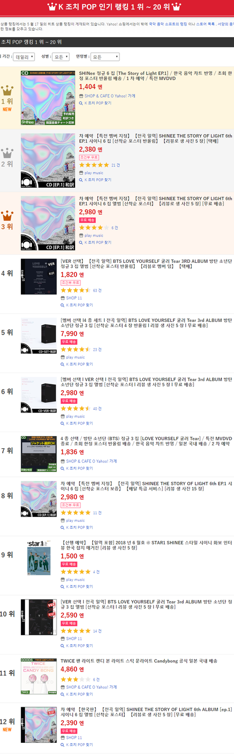 현재 일본차트 휩쓴 샤이니 컴백앨범.JPG