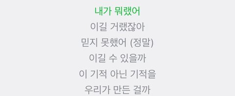 한창 까일 때 트위터에다 언젠간 이길꺼라고 다독여줬었는데 이번 가사에 저렇게 적어놓으니깐 눈물남 ......