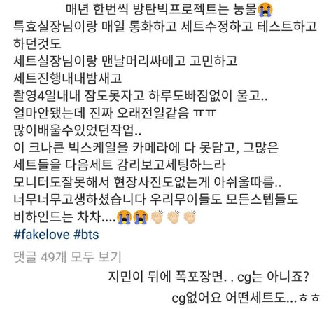 진짜였네 스케일 장난 아니야 빅히트도 점점 규모도 커지고 퀄리티도 높아지고 방탄 팬들 좋겠다