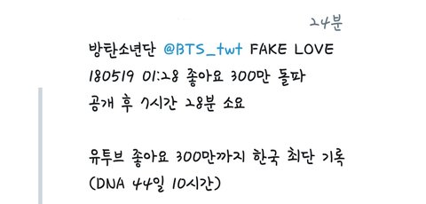 Fake Love 7시간 28분만에 300만 돌파