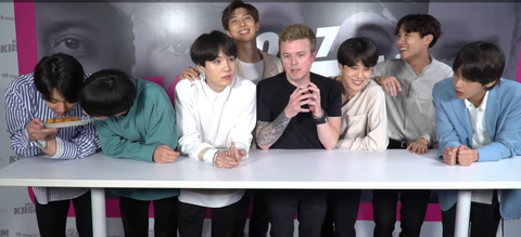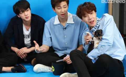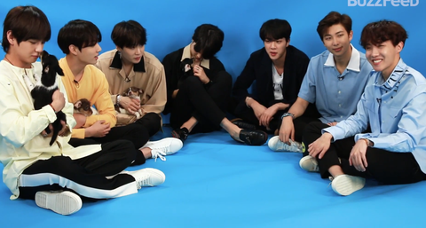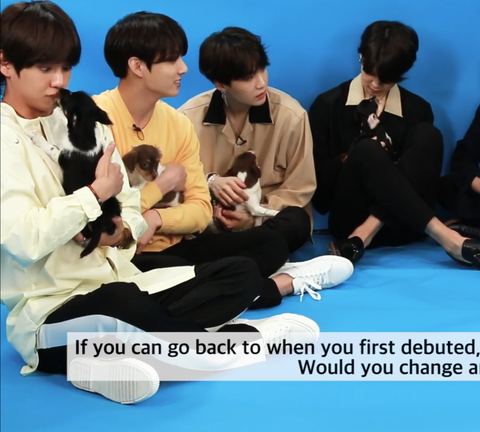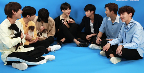 인터뷰 해야하는데 강아지들 우쭈쭈 해주는 중인 동생라인ㅋㅋㅋ동생들 사이에서 강아지 익숙하게 안아드는 슈가