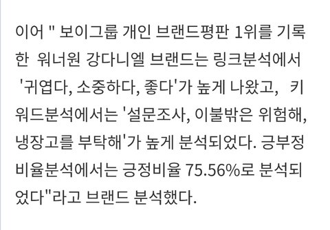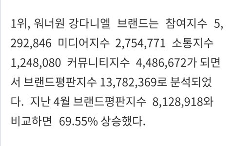 강다니엘 5월 보이그룹 개인 브랜드평판 10개월 연속 1위