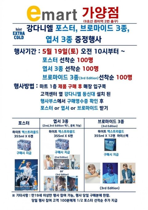 오늘 강다니엘이 광고하는 하이트 행사있어요✊