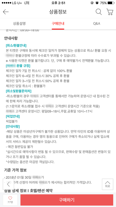 예약취소규정 부분만 차이가 나는지 이해불가