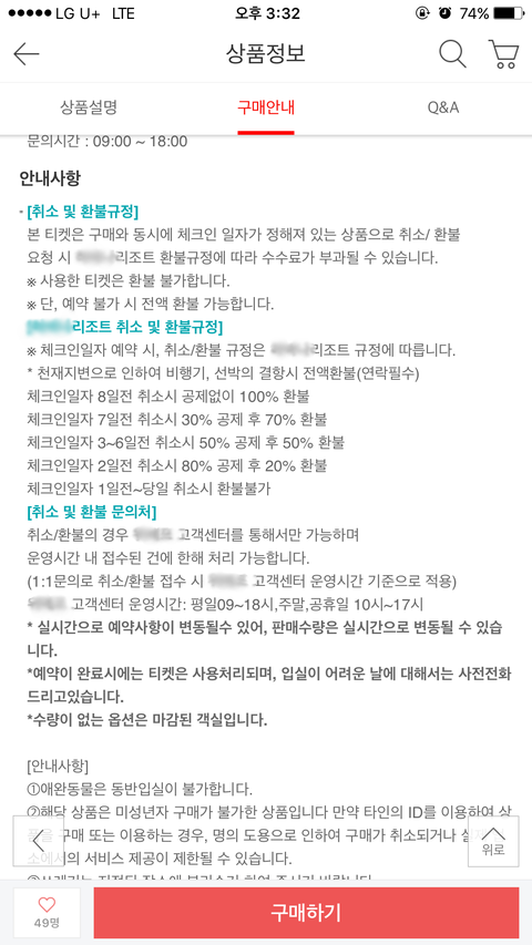 담당자는 취소규정이 있어서 어쩔수없다며