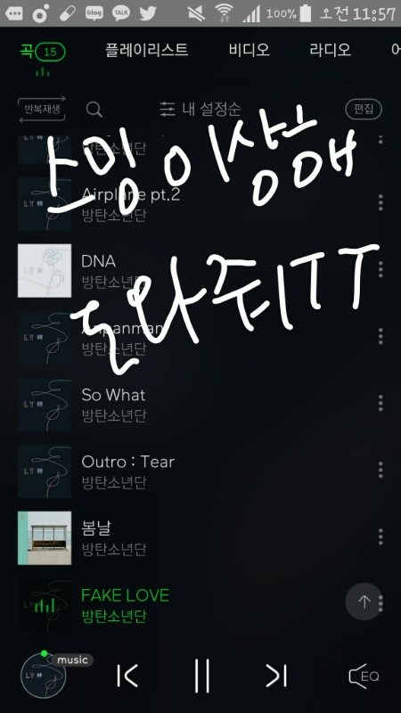 마지막 fake love 까지 들으면 다시 맨 앞으로 돌아가지 않고 저기서 멈춰... 옛날에는 마지막곡 들으면 다시 맨 앞곡으로 넘어가던데 지금은 왜 그러는거지? 나 새벽 내내 돌렸는데 한번밖에 스밍안됨ㅜㅜㅜㅜ 도와줘ㅠㅠㅠㅠㅠㅠㅠㅠㅠㅠㅠㅠㅠ