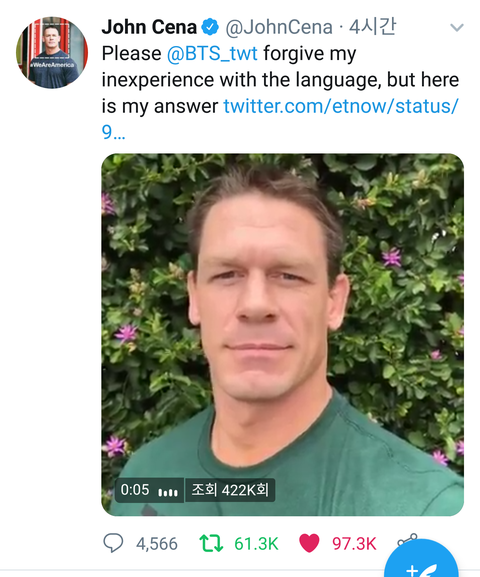 그걸 본 존시나가 영상으로 답변 올려주심