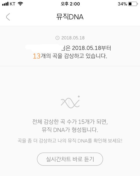 원래 뮤직 dna 거기서 확인하는데 지금 들은곡이 15개가 안돼서 확인이 안돼 ㅠㅠㅠㅠ