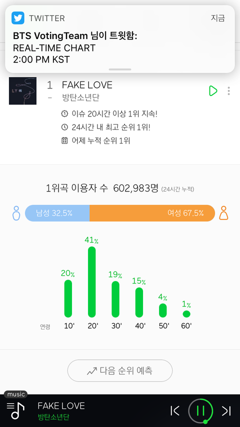 사람들이 많이 들어주나바ㅠㅠ아넘뿌듯하네 일간 1위도첨이야ㅠㅠ아미대단해방탄에게 조은 결과만 주자!!