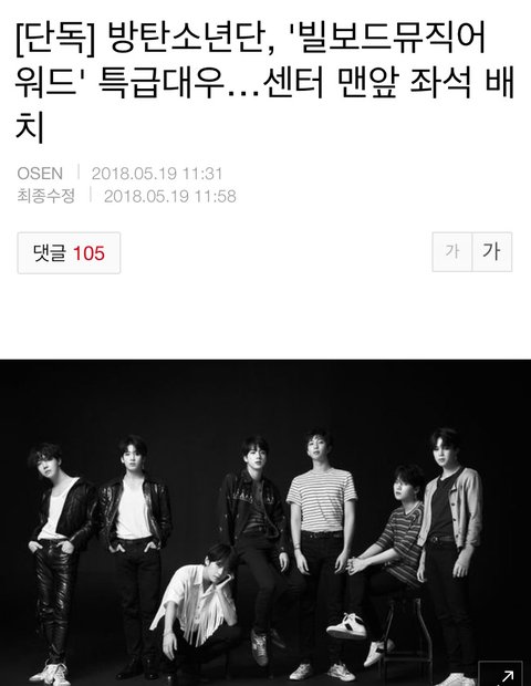 빌.보드에서 울 애들 자리 센터 맨 앞이래!!!
