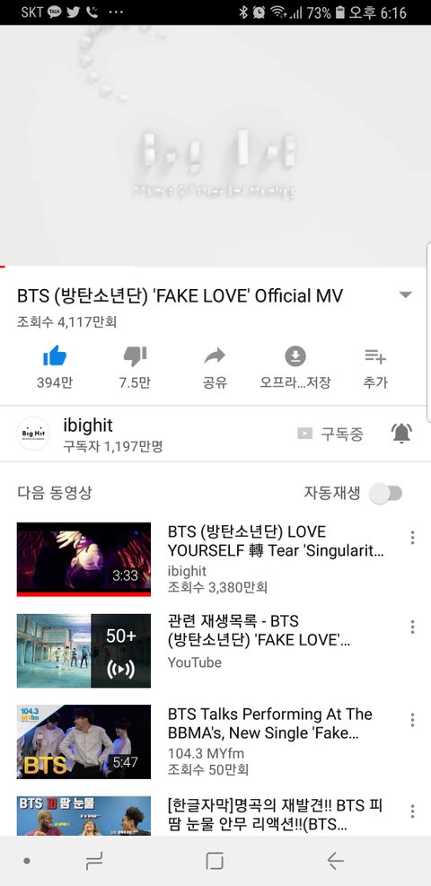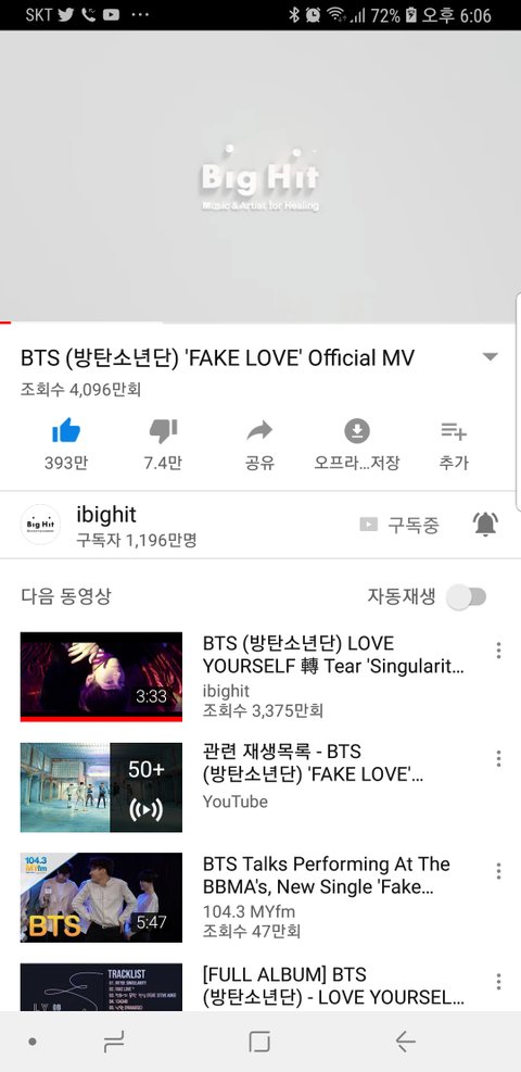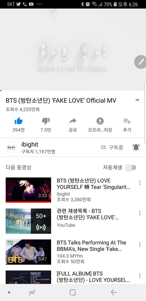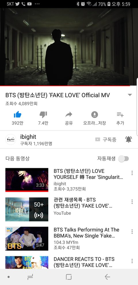 10분에 10만이상.좋아요 1만이상 꾸준해.