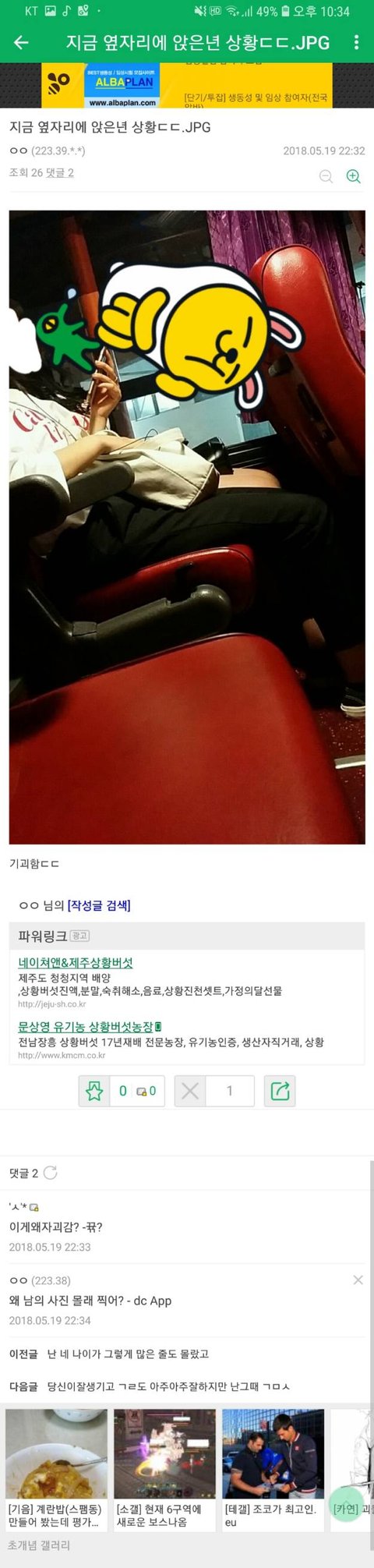 저 몰카범은 원본으로올렸구요몰카범이 남자인지는 어찌아냐 하실수있는데 바로 이어지는 글들과 아이피가 여성혐오와 몸매비판에 관한글들이기에 알수있었습니다