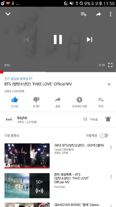 뮤비 업로드 약 30시간만에 조회수 5000만 돌파 ! 1억뷰를 향해 화이팅 !! +32시간이 아니라 30시간으로 수정했어!!