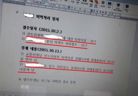퇴학처분에 먼저 결재를 했는데 생활기록부에 자퇴로 처리했다는 선생님 등의 증언의 경우
