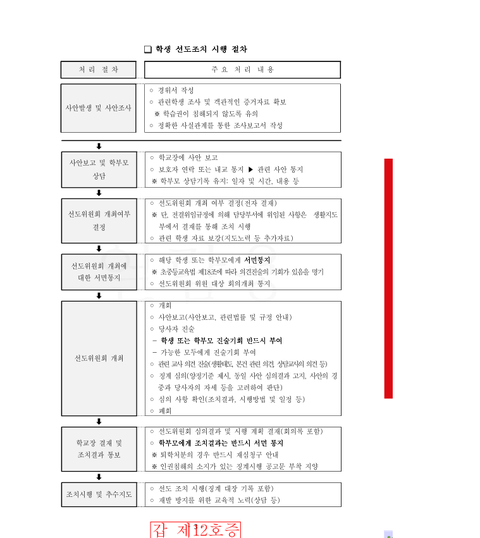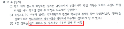 선도 회의록 및 징계대장에 결재를 할 경우 징계를 시행한다고 되어있으며