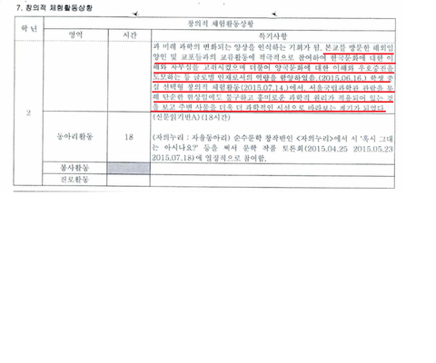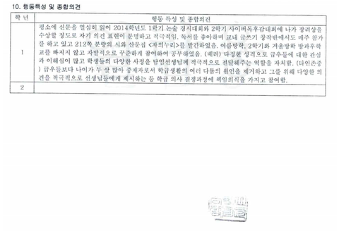 일단. 이것은 재판부에 제출했었던 2015. 10. 30일자 생활기록부의 내용입니다.