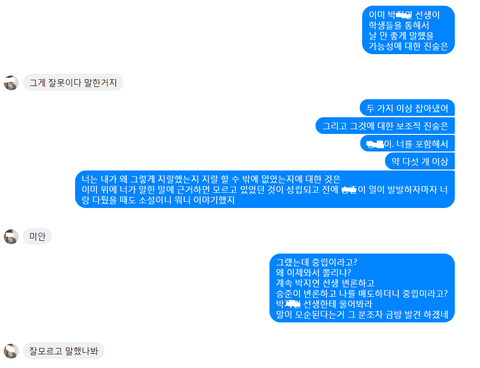선생님들 사이에선 내가 안 좋은 학생이었다고 왜곡되어 조리돌림 당할 여지도 있습니다.