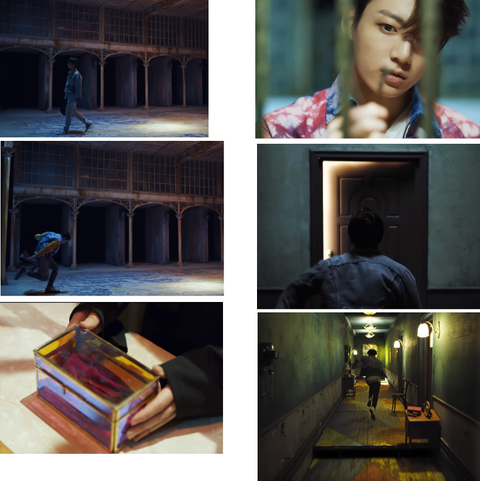 페이크 러브에서 정국이가 도망치는 모습을 옷의 모양이나 뮤비의 시간순서로 보면 이래.