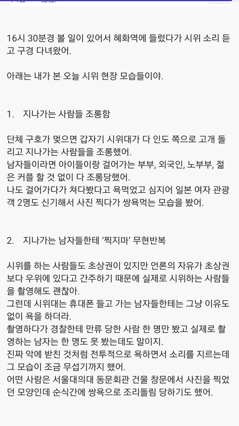 혜화역 몰카시위 다녀온 후기