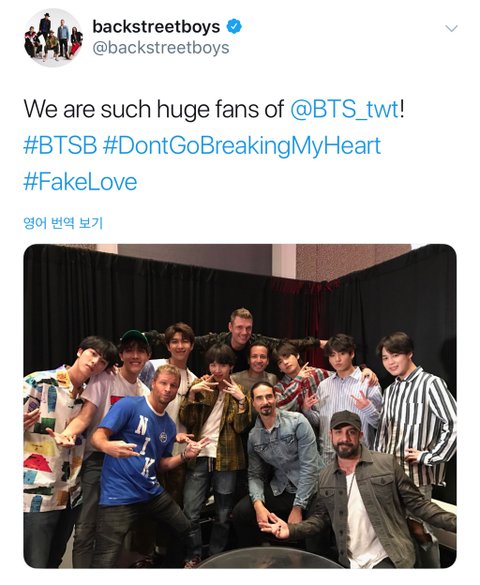 백스트리트보이 인스타에 방탄 찍은거 올라옴