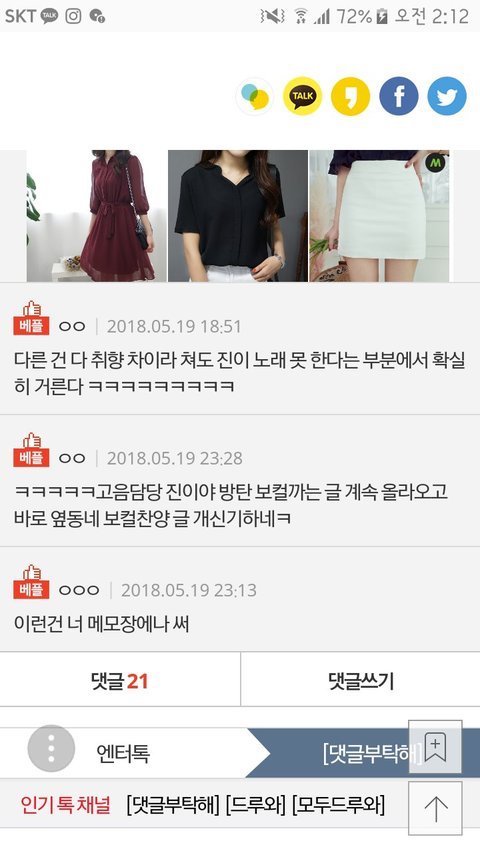 이거 베댓 지웠더라 진성 팬인가 봐