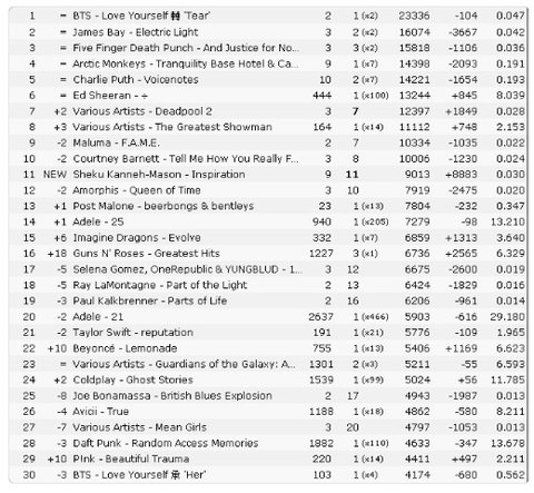 아이튠즈 최고 순위 당시 기록