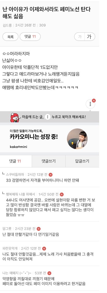아이유가 페미노선타면 어떨거같음??