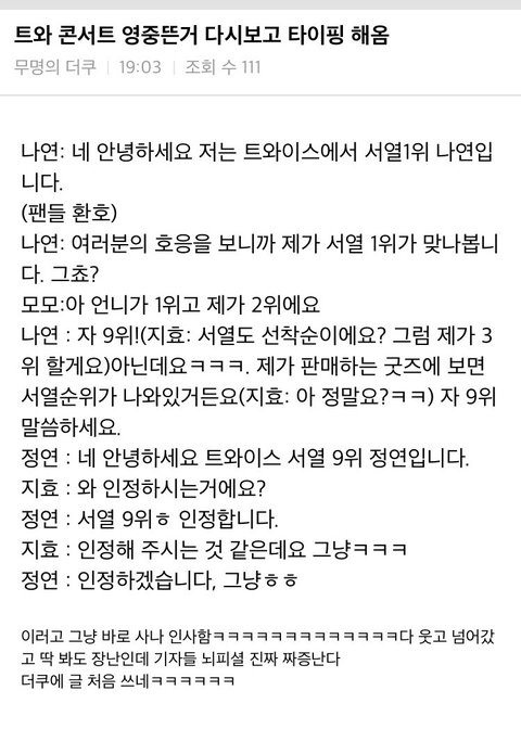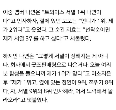 '나연 : 굿즈판매로인한 서열로 내가1위고