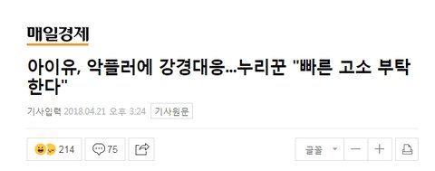 로엔 아이유 관련 악플 고소한다고 말한지 한달도 안지났는데