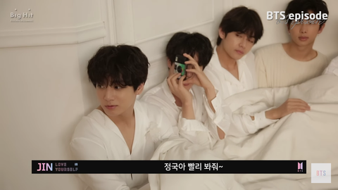 석진이가 정국이 찍으려하는데 정국이가 부끄러워 해서 안 보는데