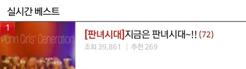 판원들때문에 판녀시대 1위로 컴백했습니다~판원들 사랑해요❤❤❤ 그런데 판녀시대 컴백때문에 카카오톡 서버 터졌네요ㅠㅠ 매일 매일 어그로 글올릴예정이니 판원 여러분 많이 기대해주세요! 마지막으로 지금은 소녀시대~❤
