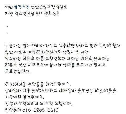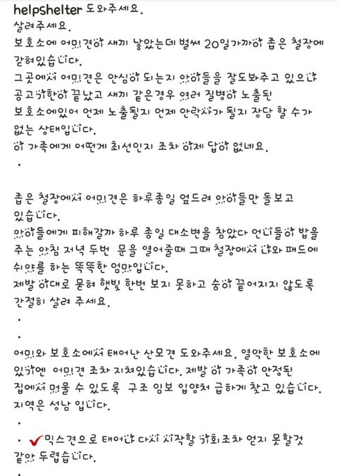 입양이나 임시보호처가 시급하대ㅠㅠ