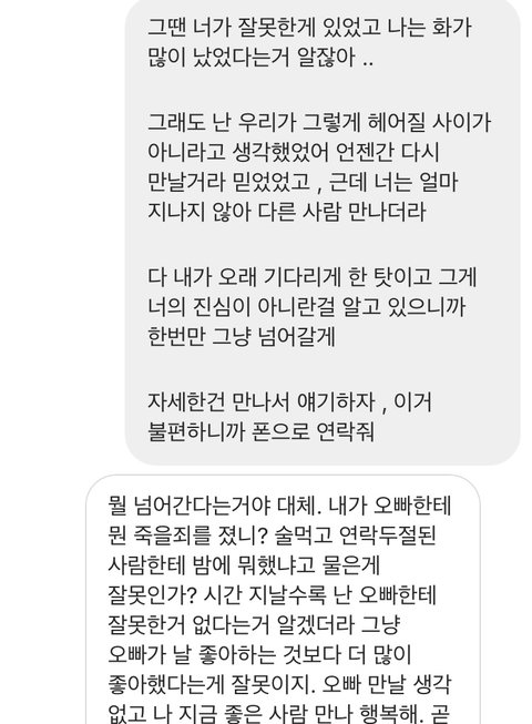 전여친이 제게 집착이 엄청 심했습니다 .. 사람 말 들어보지도 않고 왜 연락 안했냐고 닥달하는 사람이랑 무슨 대화를 합니까?