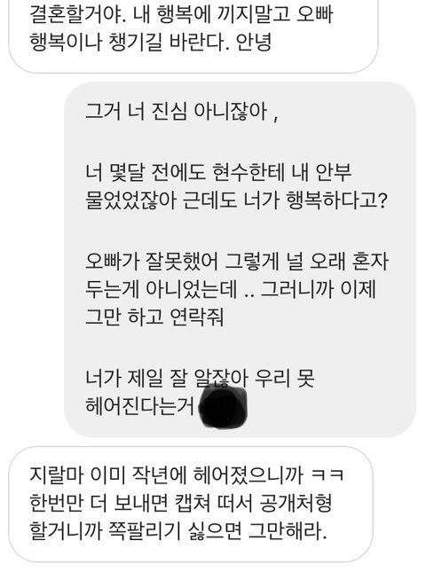 더이상 전여친한테도 그 상대남자한테도 할 짓이 아닌것같아 인스타로 연락을 했는데 저런 반응이 나왔습니다