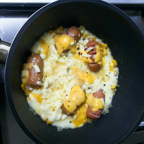 짠~ 소시지 콘치즈입니다.