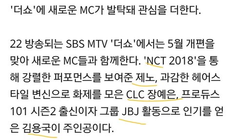 더쇼 엠씨 바뀐대 !!!!!!!!!!!