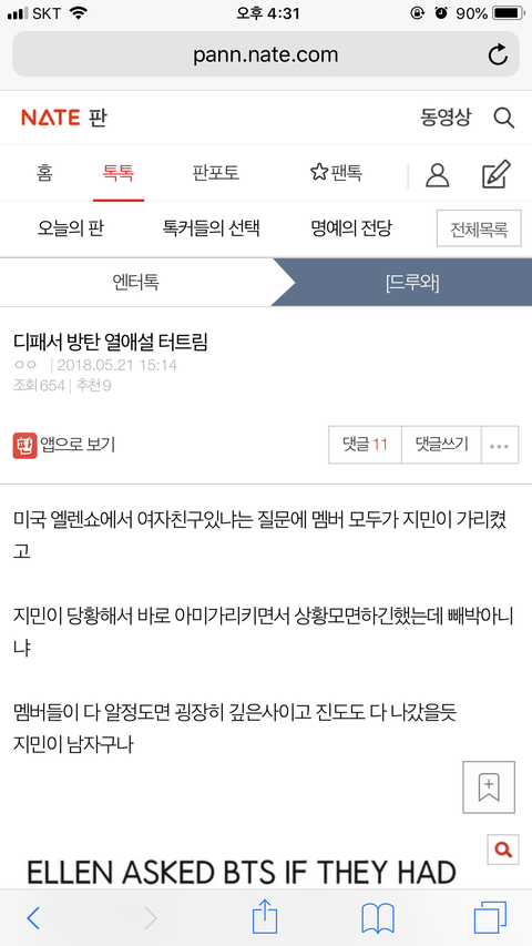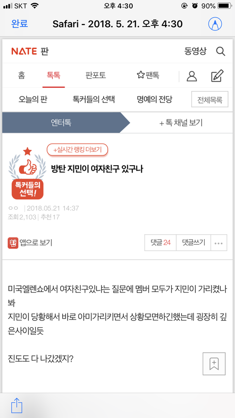 뒷페에 지민이 여자친구 궁금하다 여기서봐